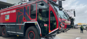 یک خودروی آتشنشانی فرودگاهی متعلق به «سازمان فدرال فرودگاههای نیجریه» در حال تخلیه فوم. پروژهی FIRE در تلاش است تا با پشتیبانی از فرودگاههای آفریقا، فومهای قدیمی حاوی PFAS را با گزینههای پاکتر جایگزین کند.